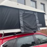 Der Anbau einer Eingangsüberdachung …accessori-maggiolina-airtop/45-wings auf der rechten Seite und links eine Markise mit Keder Schiene am Dachzelt (Option für größere Menschen, die Markise kann auch an der Oberschale eingehängt werden).