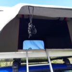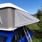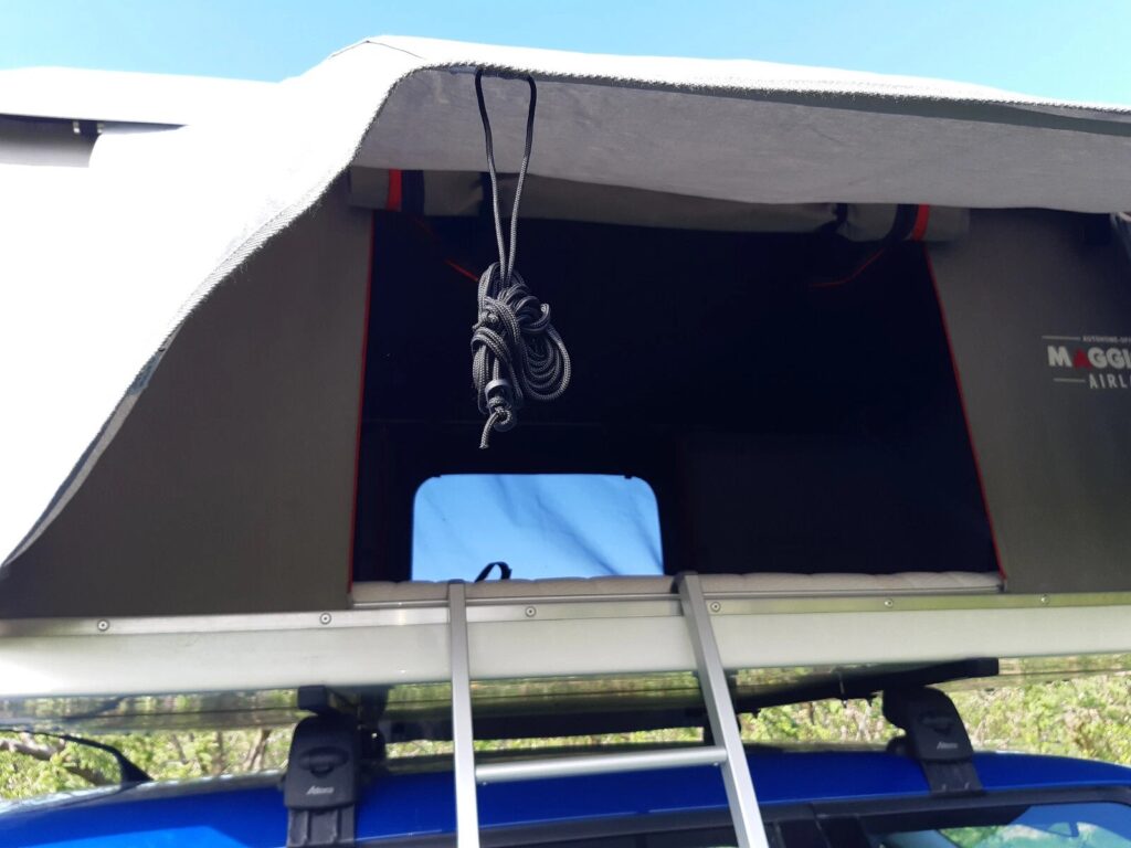 Geschlossen ausreichend Platz für Leiter, 2 Schlafsäcke und Kopfkissen im Dachkoffer.
