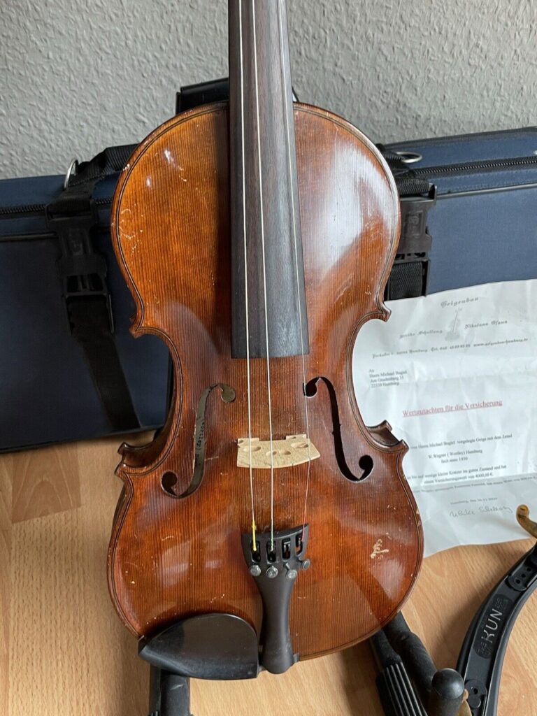 Alte Konzertgeige W. Wegner Wortley Meisterinstrument Violine / Geige 4/4 ca. 1930 Wertgutachten von ca. 4000 CHF