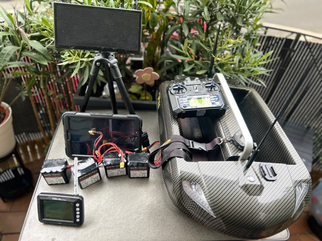 Rt4 Futterboot von carpelounge ( 2017 ) mit vielem Zubehör wie : 4 akkus ; Fernsteuerung ; Teslon Autopilot ; Tablet ( samsung ) ; echelot ; Stativ.